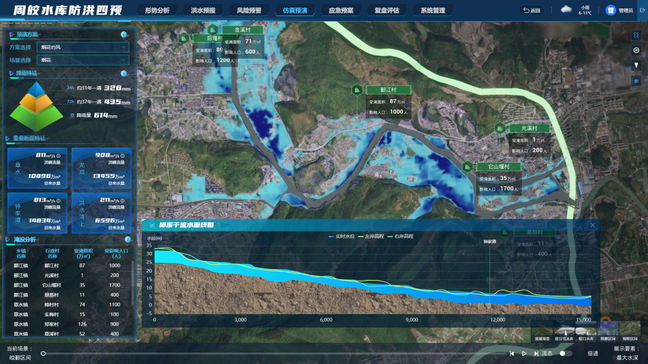 目前,本案例核心成果已在寧波市6座大型和10座重要防洪中型水庫(kù)實(shí)際應(yīng)用并取得成效,建設(shè)了“寧波市大中型水庫(kù)防洪調(diào)度統(tǒng)一管理系統(tǒng)”,助力寧波市水庫(kù)管理中型實(shí)現(xiàn)全市大中型水庫(kù)的防洪調(diào)度統(tǒng)一管理。其中,作為本案例的典型實(shí)踐應(yīng)用,“數(shù)字孿生周公宅-皎口梯級(jí)水庫(kù)”依托水利部 2022 年“數(shù)字孿生流域建設(shè)先行先試工作(2022-2023年)”先行先試試點(diǎn)項(xiàng)目開(kāi)展實(shí)施,并成功支撐周公宅和皎口兩座水庫(kù)有效應(yīng)對(duì) 2022 年的“軒嵐諾”和“梅花”、2023 年的“杜蘇芮”和“卡努”、2024 年的“貝碧嘉”和“康妮”等多場(chǎng)臺(tái)風(fēng)暴雨的實(shí)戰(zhàn)驗(yàn)證。