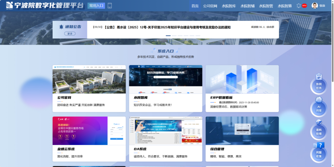 作為我院智慧水利研究院咨詢與解決方案部總監(jiān),張焱及其團(tuán)隊(duì)身處業(yè)務(wù)鏈條最前端,主導(dǎo)項(xiàng)目售前咨詢,精準(zhǔn)對(duì)接客戶需求,是我院在智慧水利領(lǐng)域的一線開(kāi)拓者。從臺(tái)風(fēng)防御技術(shù)研發(fā)到省河湖庫(kù)數(shù)字化管理,從水利工程信息化設(shè)計(jì)到數(shù)智水院產(chǎn)品推廣,他始終緊貼政策前沿與業(yè)務(wù)一線,以專(zhuān)業(yè)為錨、以創(chuàng)新為帆,在江河湖海的治理藍(lán)圖上書(shū)寫(xiě)智慧答卷。