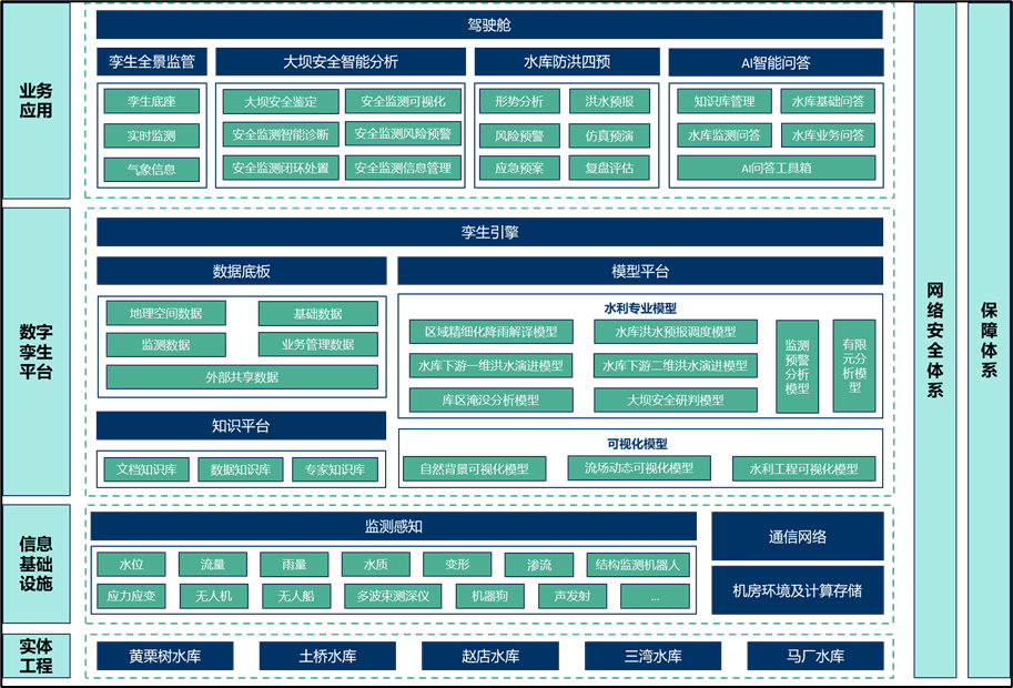 《方案》以黃栗樹等五座水庫為核心對象,進行了前瞻性的信息化總體設計。旨在通過引入先進信息技術,構建覆蓋水庫運行管理全生命周期的智能化體系。該體系以實現對水雨情、工情、供用水、水質及安全狀況等關鍵要素的精準感知、動態(tài)監(jiān)測、智能分析與高效決策為核心目標,全面提升水庫在科學調度、風險防控、管理效能與服務保障方面的綜合能力。主要建設內容涵蓋智慧業(yè)務應用、數字孿生平臺、信息基礎設施及網絡安全體系,共同構成層次清晰、協同聯動、安全可靠的現代化水利信息化總體框架,為區(qū)域水安全與可持續(xù)發(fā)展奠定堅實的數字基石。