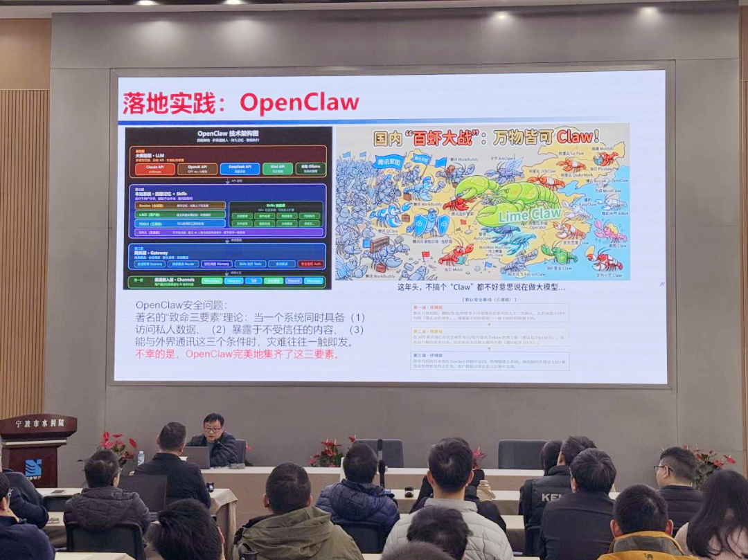 本次專題培訓(xùn)圍繞AI智能體的概念展開,簡要分析其與大模型的區(qū)別,系統(tǒng)闡述了智能體的發(fā)展歷程、構(gòu)成要素及落地實施路徑,并現(xiàn)場演示了“數(shù)智水院智能體”及當(dāng)下流行的OpenClaw等應(yīng)用實踐案例。演示環(huán)節(jié)生動直觀,引發(fā)參訓(xùn)干部的濃厚興趣。大家紛紛表示深受啟發(fā),對AI賦能勘察設(shè)計工作有了更清晰的認(rèn)知和更強的信心。