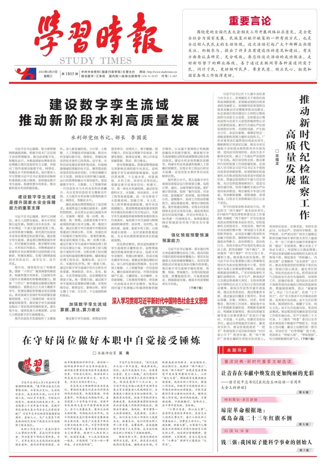 習(xí)近平總書記強(qiáng)調(diào),要全面貫徹網(wǎng)絡(luò)強(qiáng)國(guó)戰(zhàn)略,把數(shù)字技術(shù)廣泛應(yīng)用于政府管理服務(wù),推動(dòng)政府?dāng)?shù)字化、智能化運(yùn)行,為推進(jìn)國(guó)家治理體系和治理能力現(xiàn)代化提供有力支撐,并提出了提升流域設(shè)施數(shù)字化、網(wǎng)絡(luò)化、智能化水平的明確要求。我們要深入學(xué)習(xí)貫徹習(xí)近平總書記重要講話精神和重要指示批示精神,加快建設(shè)數(shù)字孿生流域,構(gòu)建智慧水利體系,推動(dòng)新階段水利高質(zhì)量發(fā)展。
