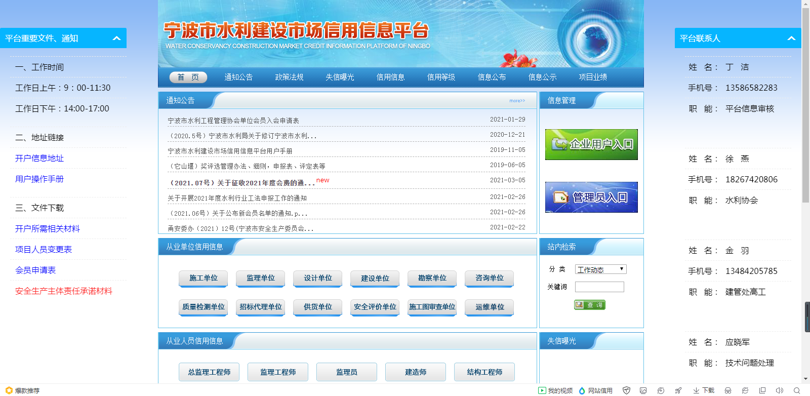 系統(tǒng)是以勘察設(shè)計(jì)、施工、監(jiān)理等水利建設(shè)市場主體及相關(guān)執(zhí)(從)業(yè)人員的信用信息為基礎(chǔ),采用B/S模式構(gòu)建水利建設(shè)市場主體各方信用信息互聯(lián)互通的網(wǎng)絡(luò)平臺(tái),集成信用信息在線填報(bào)、市縣區(qū)分級(jí)審核、信用評(píng)價(jià)、數(shù)據(jù)統(tǒng)計(jì)、信用信息共享發(fā)布、門戶展示等業(yè)務(wù)部分,及時(shí)準(zhǔn)確地為有關(guān)水行政主管部門開展建設(shè)市場行政監(jiān)管工作和社會(huì)公眾監(jiān)督提供條件,為社會(huì)各界查詢有關(guān)信用信息提供服務(wù)。