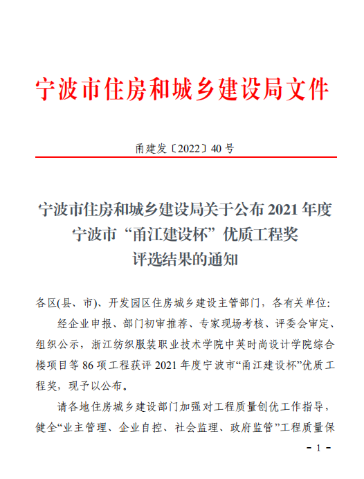 我院兩項工程榮膺2021年度寧波市“甬江建設(shè)杯”優(yōu)質(zhì)工程獎