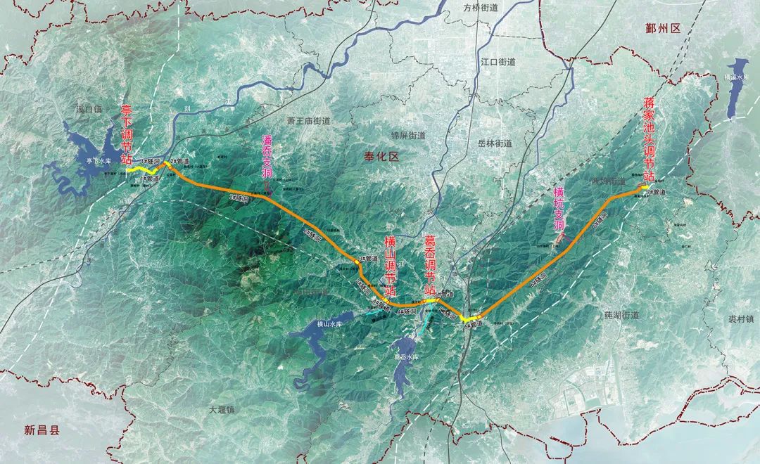 作為浙江省重點水利工程建設項目,寧波市水庫群東西線聯(lián)通工程位于寧波市奉化區(qū)南部山區(qū),工程設計輸水規(guī)模為40萬m3/d,項目投資約20億元。建設內容包括一條干線、兩條支線,沿線調節(jié)站及各類閥井。全線總長約40.54km,其中干線長約36.76km,隧洞長度約31.09km,管道長度約5.67km,橫山支線長約1.45km,葛岙支線長約2.33km;新建4座調節(jié)站,分別為新建亭下調節(jié)站、橫山支線調節(jié)站、蔣家池頭調節(jié)站、葛岙支線調節(jié)站;新建各類檢修閥井若干。工程等別為Ⅲ等,工程規(guī)模為中型。主要建筑物如輸水隧洞、輸水管道及調節(jié)站等建筑物級別為 3 級。洪水重現(xiàn)期為 30 年一遇洪水設計,100 年一遇洪水校核。