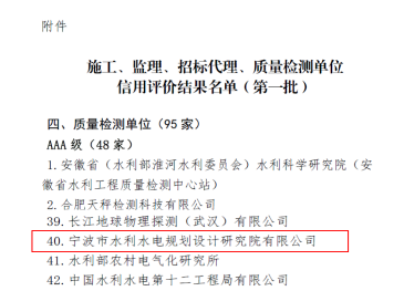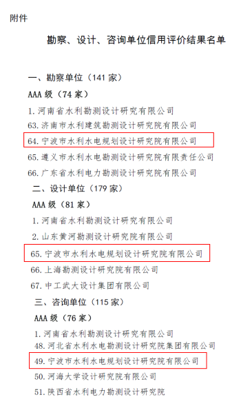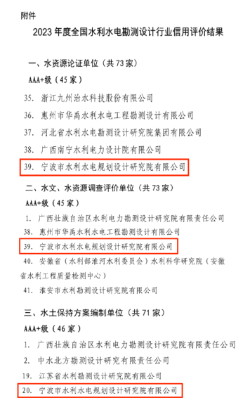 4項(xiàng)AAA,3項(xiàng)AAA+!我院在2023年度水利建設(shè)市場主體及全國水利水電勘測設(shè)計(jì)行業(yè)信用評(píng)價(jià)中再創(chuàng)佳績