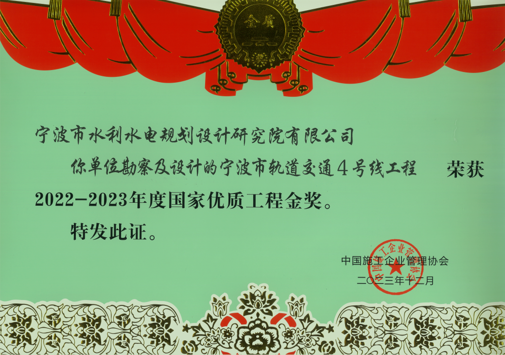 2023年我院多個(gè)項(xiàng)目在各類評(píng)比中脫穎而出,榮獲中國水利工程優(yōu)質(zhì)(大禹)獎(jiǎng)、國家優(yōu)質(zhì)工程金獎(jiǎng)、全國優(yōu)秀工程咨詢成果三等獎(jiǎng)、浙江省水利科技創(chuàng)新獎(jiǎng)、浙江省水土保持學(xué)會(huì)第三屆優(yōu)秀設(shè)計(jì)三等獎(jiǎng)、“浙江省文明標(biāo)化工地”稱號(hào)、2023 年度寧波市建設(shè)工程優(yōu)秀勘察設(shè)計(jì)獎(jiǎng)、2023年度寧波市“甬江建設(shè)杯”優(yōu)質(zhì)工程獎(jiǎng)、寧波市水利科技創(chuàng)新獎(jiǎng)、寧波市水利學(xué)會(huì)優(yōu)秀論文獎(jiǎng)等各類榮譽(yù)20余項(xiàng)。