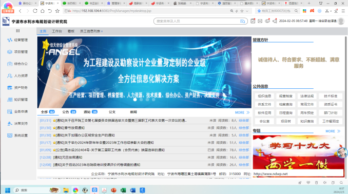從2002年探索建設(shè)流域數(shù)字化至今,寧波院業(yè)務(wù)的數(shù)字化已走過了20多年,2023年,以事業(yè)部制轉(zhuǎn)型為契機(jī),提出建設(shè)以O(shè)A辦公系統(tǒng)、業(yè)財(cái)一體化系統(tǒng)、知識(shí)庫系統(tǒng)為代表的管理工具,在業(yè)務(wù)數(shù)字化的基礎(chǔ)上,推動(dòng)企業(yè)管理的數(shù)字化轉(zhuǎn)型。