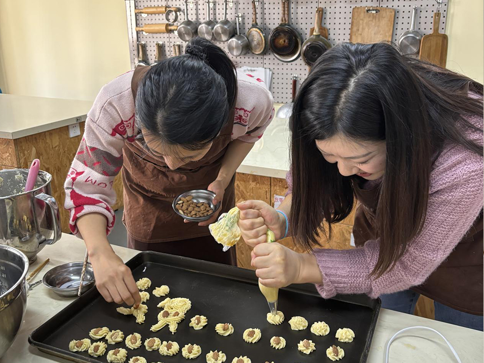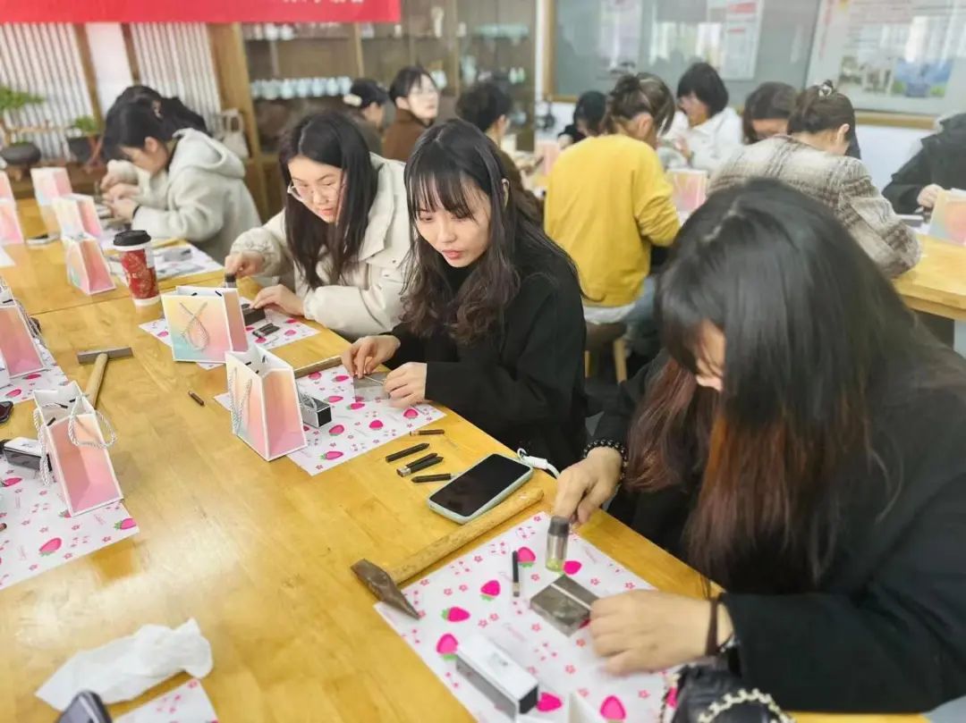 活動(dòng)當(dāng)天,女職工們按時(shí)到達(dá)活動(dòng)教室,發(fā)揮巧思,施展妙手,或是“掐絲、剪絲、上砂、上膠”,或是“測(cè)量、造型、印刻、拋光”,或是“和面、打發(fā)、烘烤、裝點(diǎn)”,解鎖了一系列全新的體驗(yàn),收獲了節(jié)日的快樂和美好。